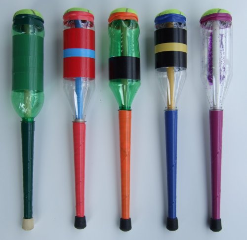 "The Green Club is a unique, home-made juggling club constructed primarily of recycled materials. It juggles nearly as well as any club on the market and better than some. It is reasonably durable and costs almost nothing. The small design is perfect for kids or for numbers juggling. So is the price. It is a great project for a juggling group that wants to do outreach with kids or outfit its members on a budget." - Jonathan Poppele